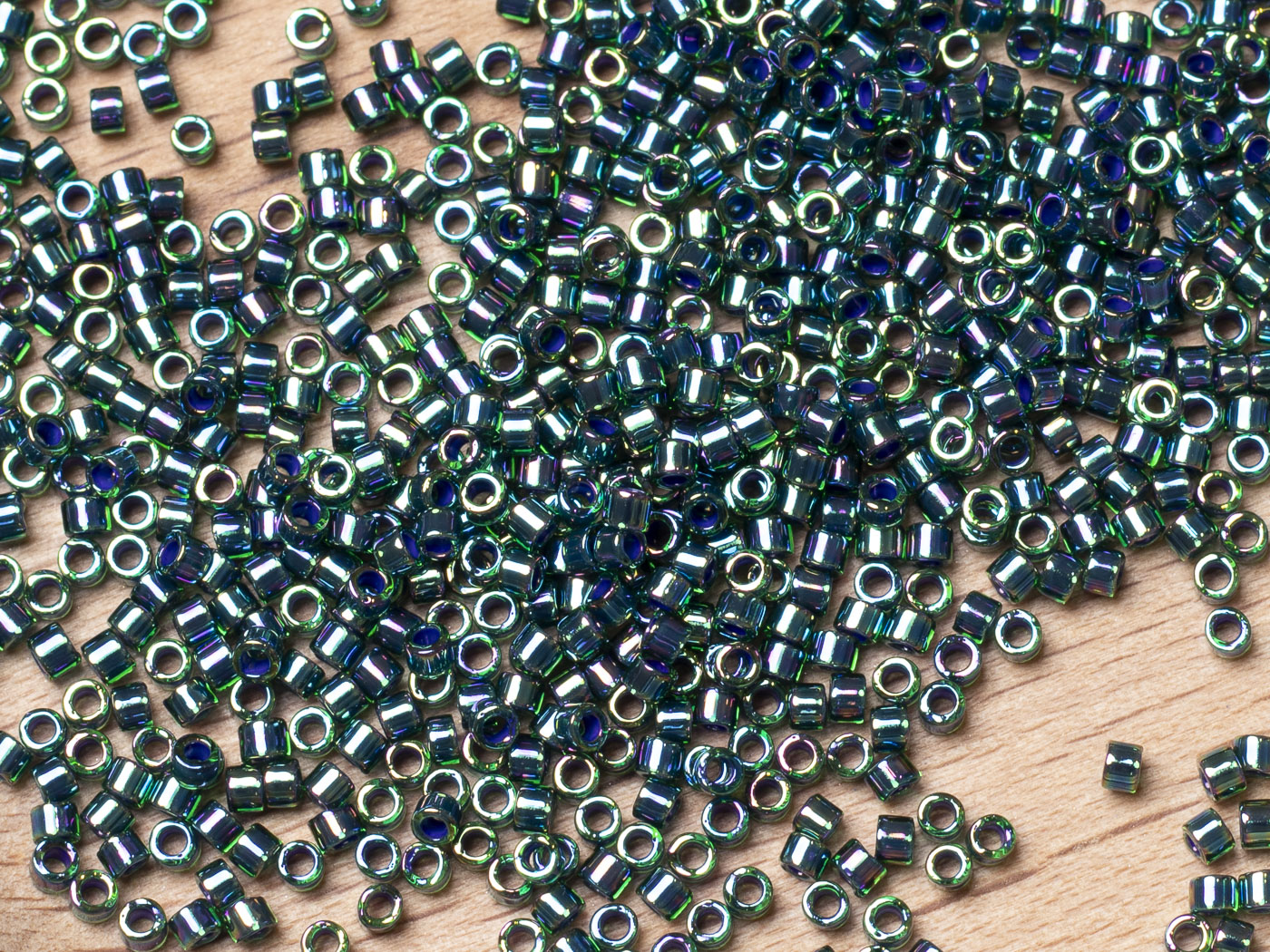 Бисер Япония MIYUKI Delica цилиндрический 11/0 5г DB-0276 изумрудный радужный с цветной линией