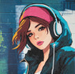 Кристальная ( алмазная) мозаика " ФРЕЯ" ALBP- 258 постер " Девушка в наушниках" 30 х 30 см