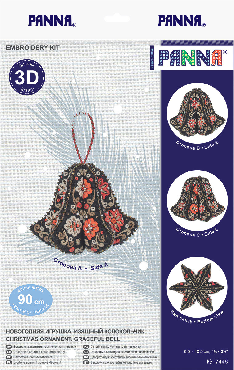 Набор для вышивания " PANNA" IG- 7448 " Новогодняя игрушка. Изящный колокольчик" 8. 5 х 10. 5 см